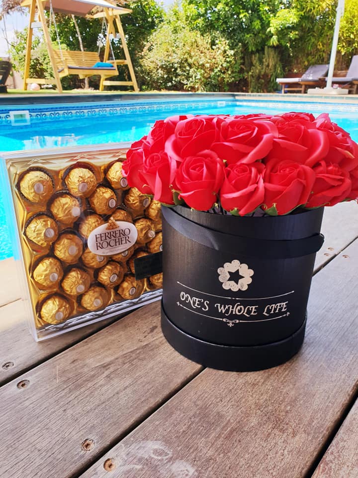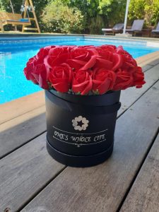 קופסת פרחים אדומים ופררו